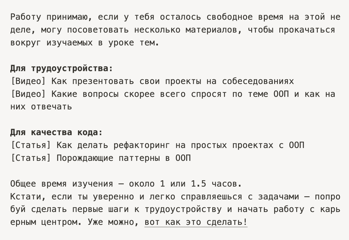 Решение: Добавляем в генерируемый фидбек список ссылок / советов / доп заданий для отличников.